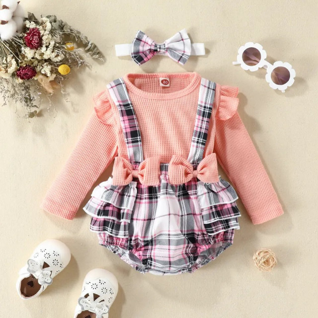 Pantalonasi bufanti cu bluzita roz somon (marime disponibila: 9-12 luni