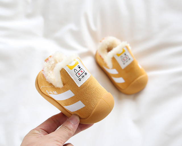 Pantofi imblaniti pentru copii, din material tip piele intoarsa, cu dungi laterale albe.