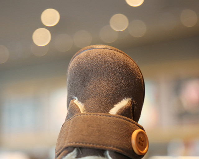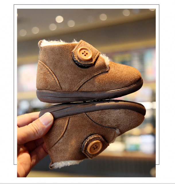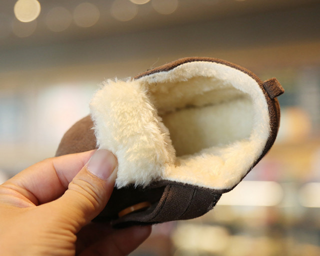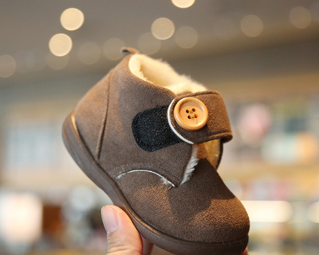 Pantofi imblaniti pentru copii, din material tip piele intoarsa, se inchid cu bareta cu arici intr-o parte.