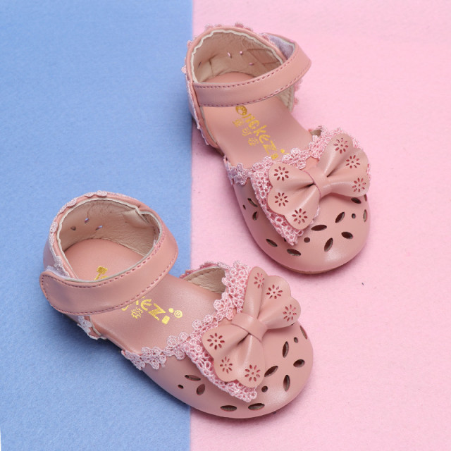 Pantofi roz pudra cu fundita si danteluta (marime disponibila: marimea 22)