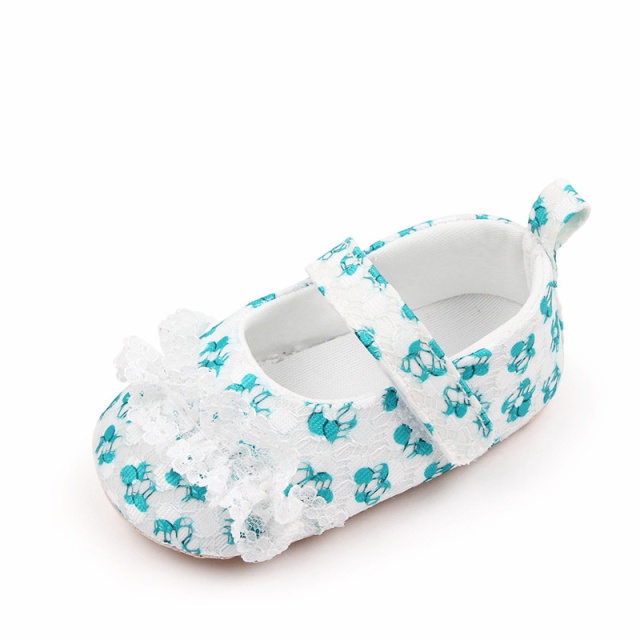 Pantofiori albi cu danteluta cu floricele verzi (marime disponibila: 9-12 luni