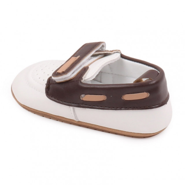 Pantofiori albi cu maro de ocazie pentru baietei (marime disponibila: 3-6 luni