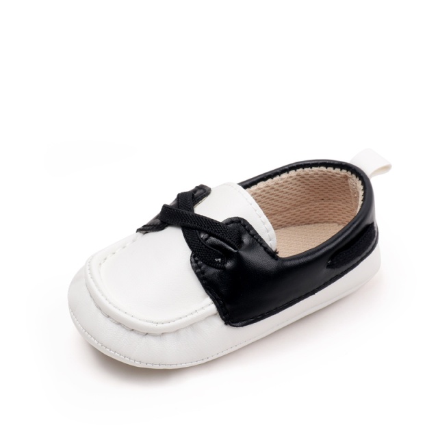 Pantofiori albi cu negru tip mocasini (marime disponibila: 3-6 luni (marimea 18