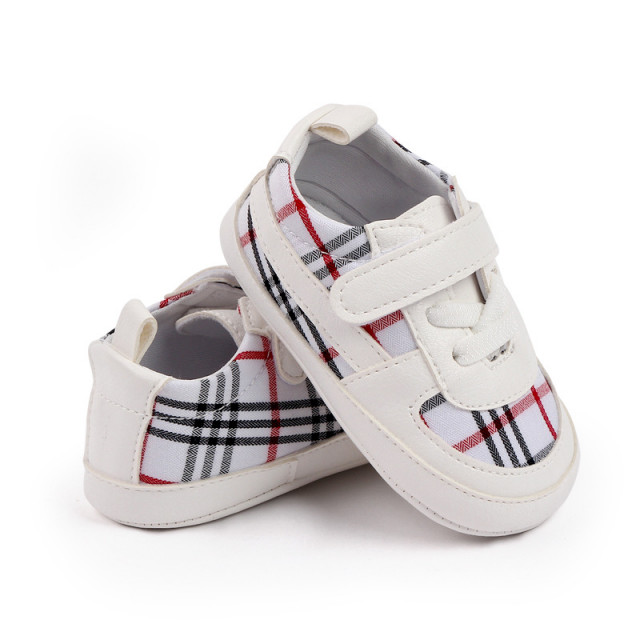 Pantofiori albi in carouri pentru baietei (marime disponibila: 9-12 luni