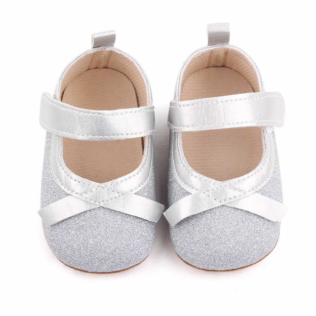 Pantofiori argintii cu fundita (marime disponibila: 3-6 luni (marimea 18