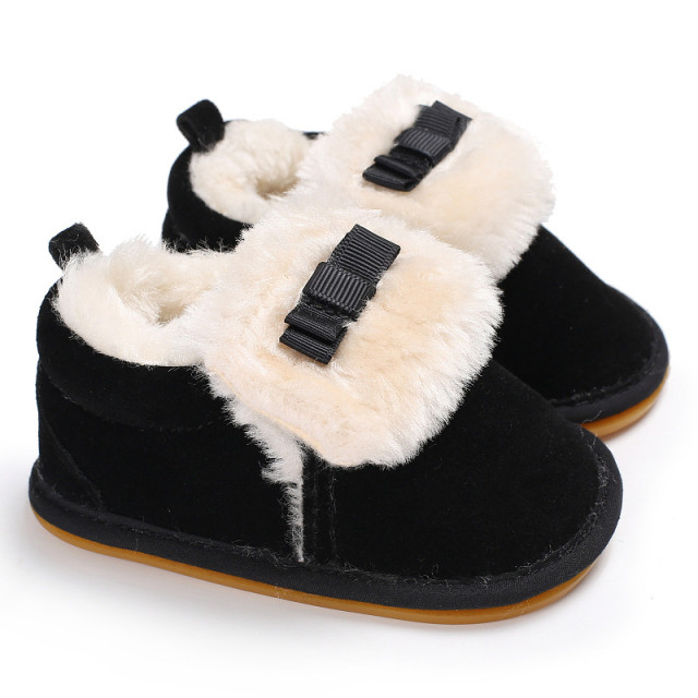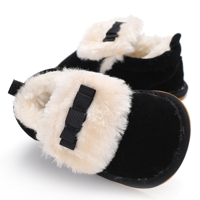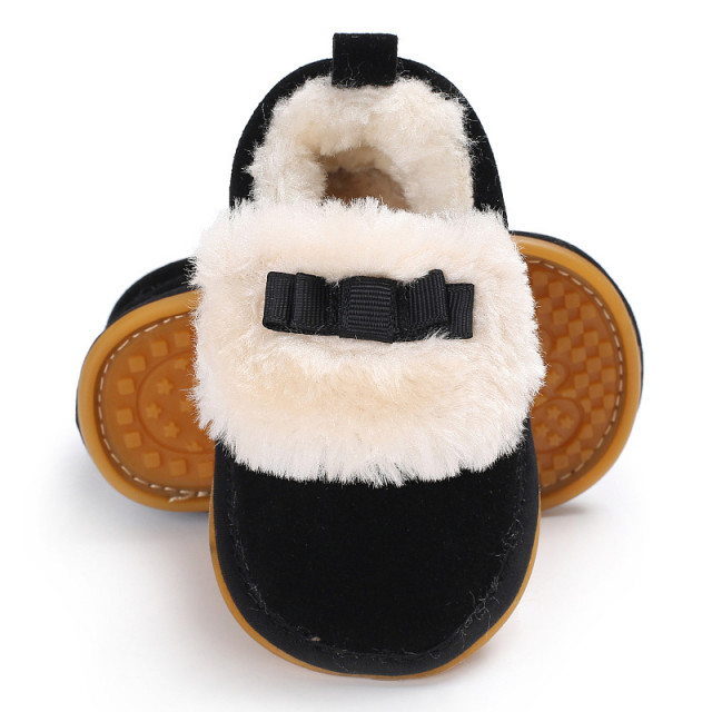 Pantofiori pentru fetite, din material tip piele intoarsa, imblaniti, cu o fundita aplicata in fata.