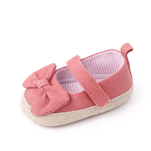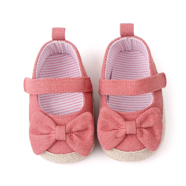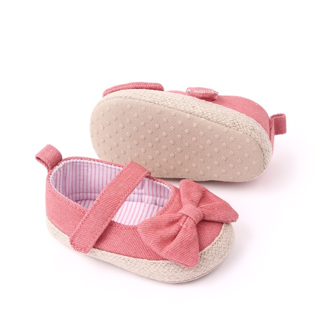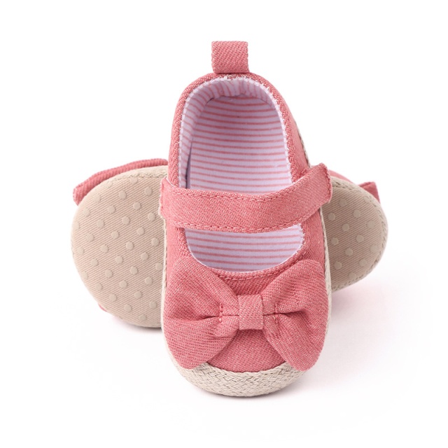 Pantofiori corai pentru fetite - bow (marime disponibila: 3-6 luni (marimea 18