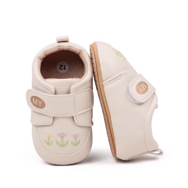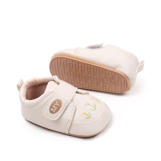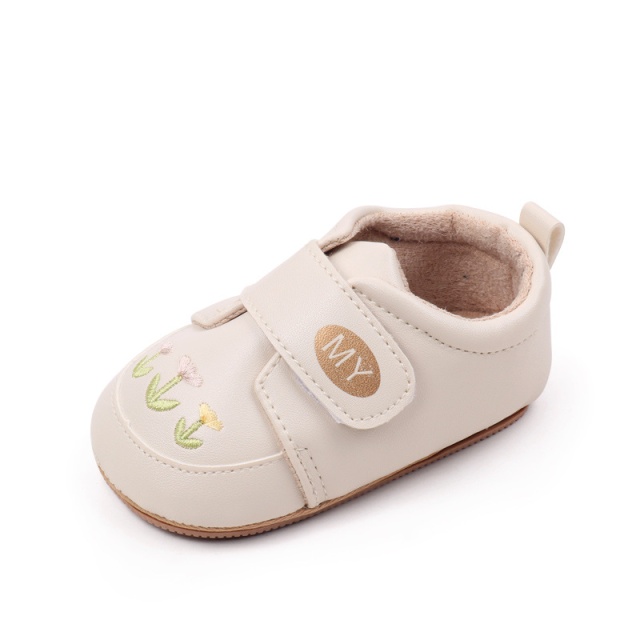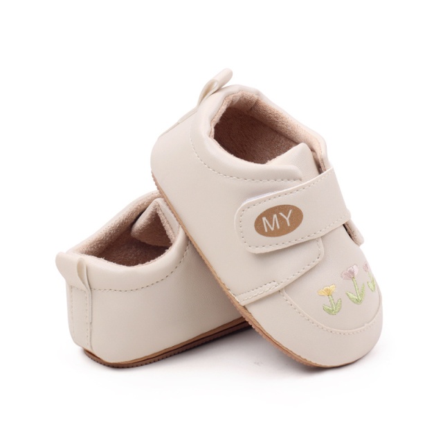 Ofera-i micutei tale confort si stil cu acesti pantofiori delicati, in nuante de crem, decorati cu broderii florale.