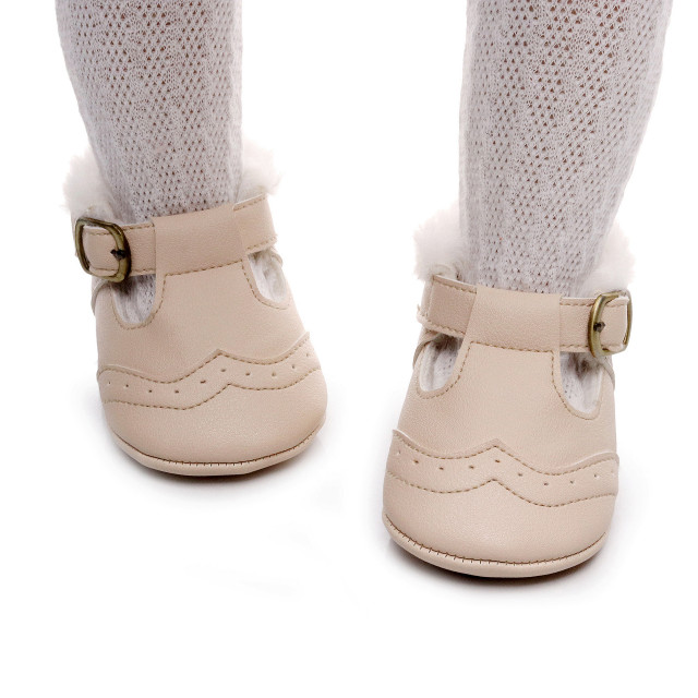 Pantofiori crem imblaniti pentru fetite - lilly (marime disponibila: 9-12 luni