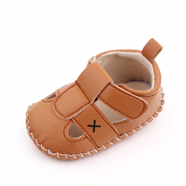 Sandalute din piele pentru bebelusi, cu talpa moale si cusaturi decorative, ideale pentru primii pasi. Culoare maro, inchidere cu velcro pentru o fixare sigura si confortabila. Ofera protectie si sustinere picioarelor delicate, fiind perfecte pentru zilele calde si activitatile zilnice.