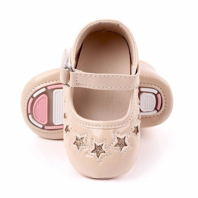 Pantofiori din lac crem cu stelute (marime disponibila: 0-3 luni)