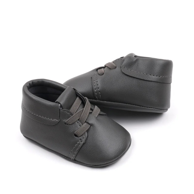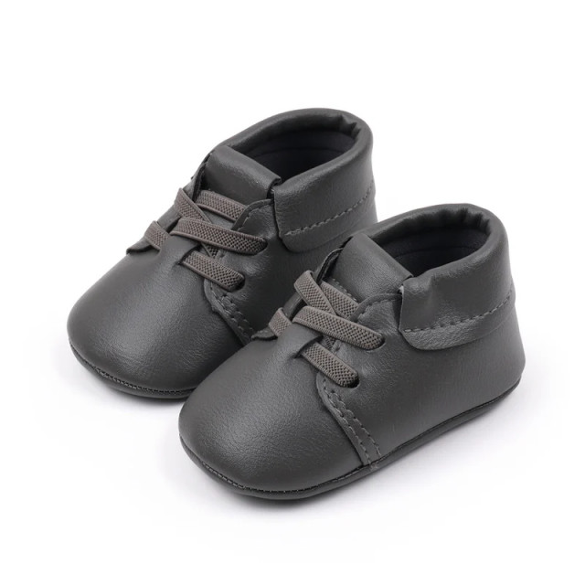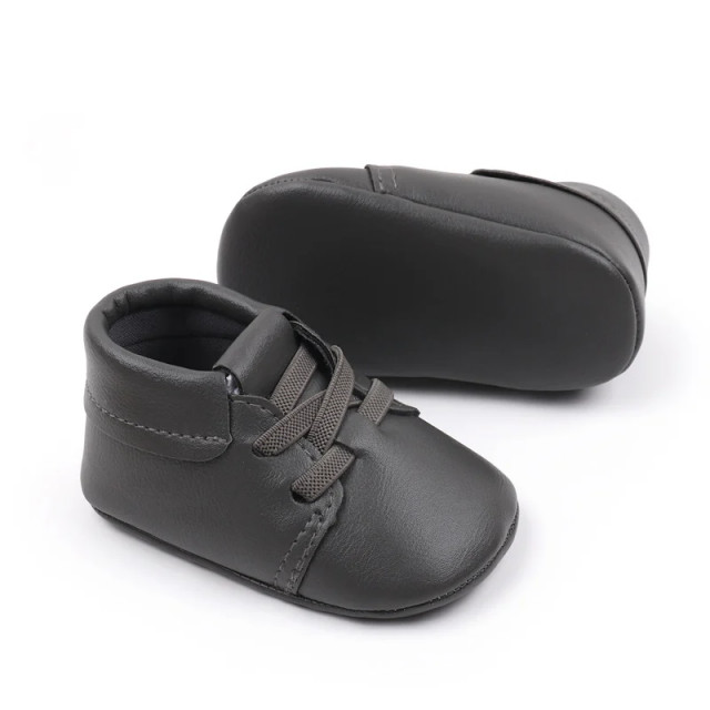 Culoare de baza: GriStil: ElegantMaterial: Piele ecologicaPentru: BaietiTalpa: Usoara - pentru bebelusiTip inchidere: SiretCuloare: GriMarime Disponibila: 3-6 luni (Marimea 18 incaltaminte)Marime Disponibila: 6-9 luni (Marimea 19 incaltaminte)Marime Disponibila: 9-12 luni (Marimea 20 incaltaminte)