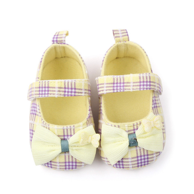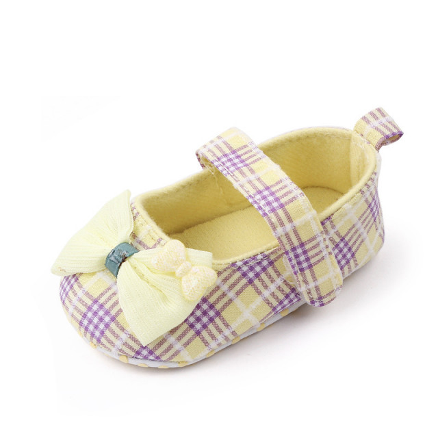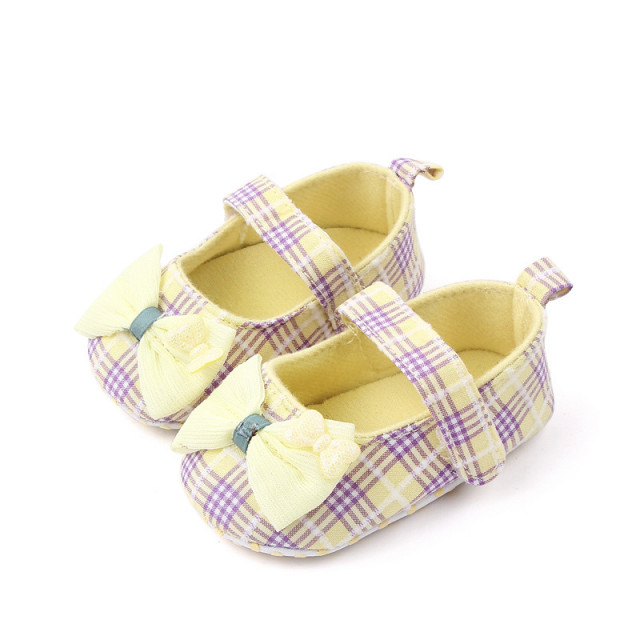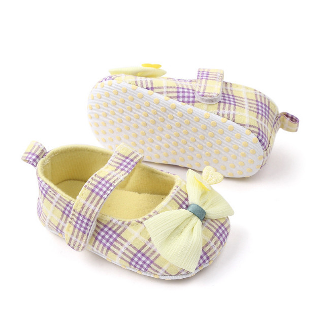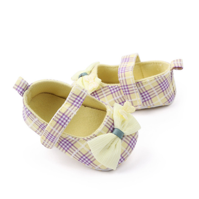 Pantofiori in carouri galbene si lila (marime disponibila: 6-9 luni (marimea 19