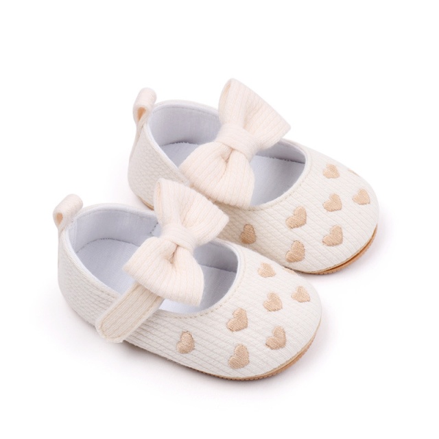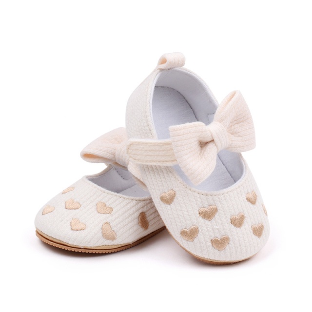 Pantofiori ivoire cu inimioare aurii (marime disponibila: 6-9 luni (marimea 19