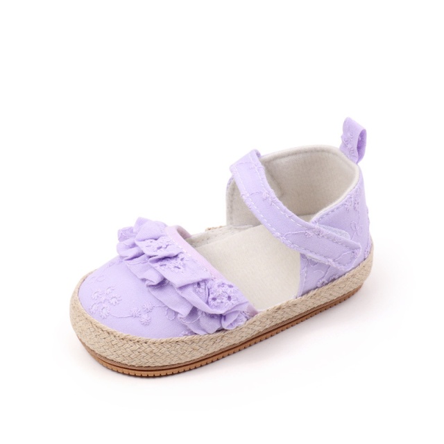 Pantofiori lila cu volanase si detalii florale (marime disponibila: 6-9 luni