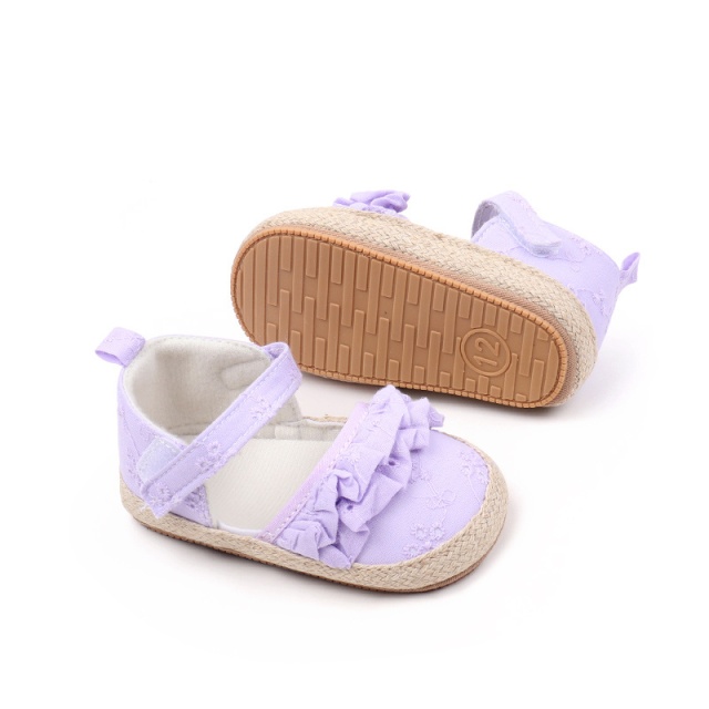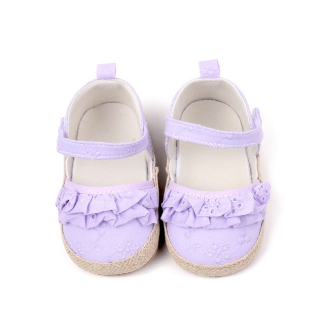 Pantofiori lila cu volanase si detalii florale (marime disponibila: 9-12 luni