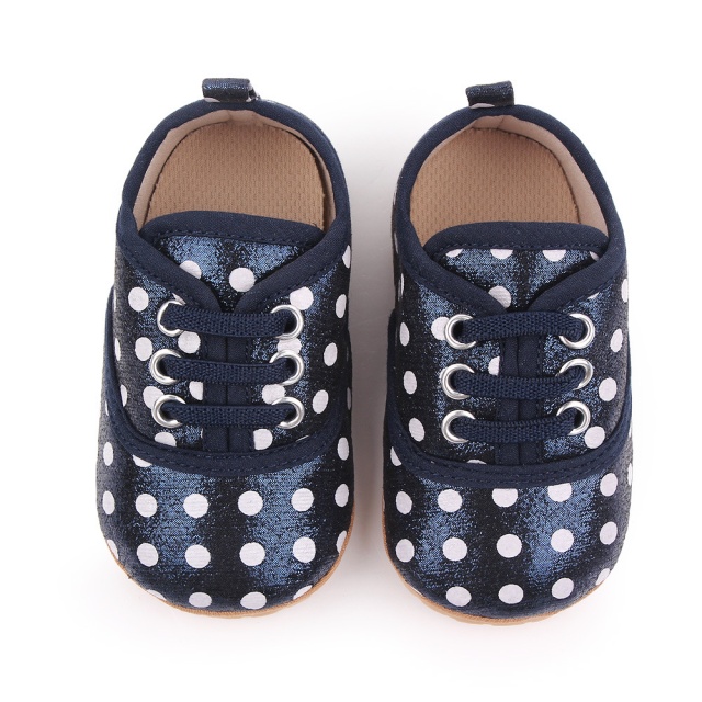 Pantofiori pentru bebelusi, bleumarine sidefat cu buline albe (marime