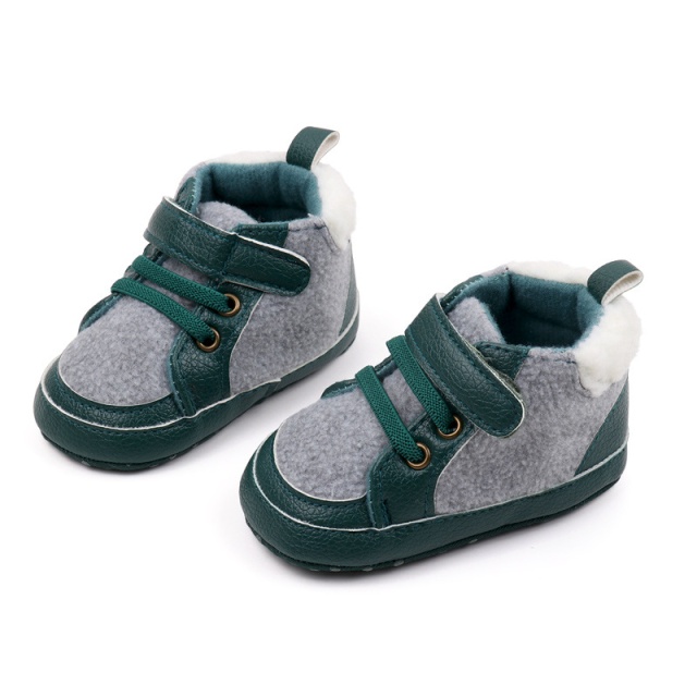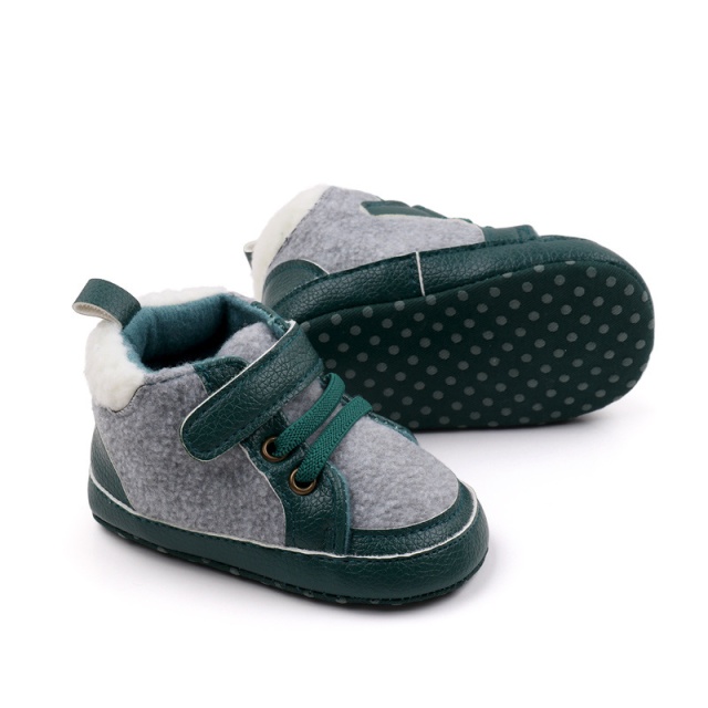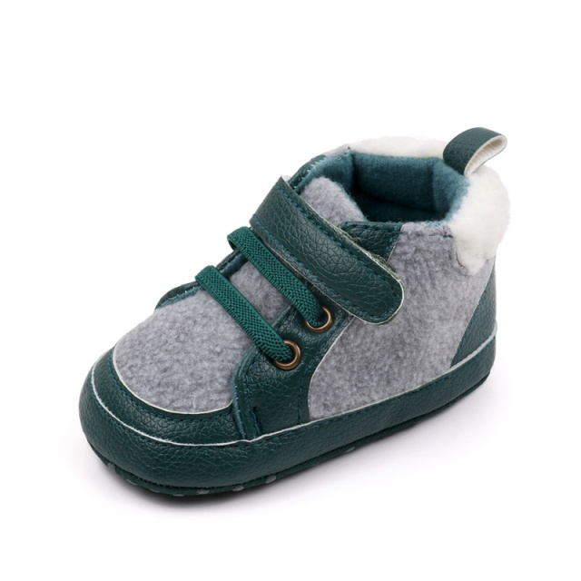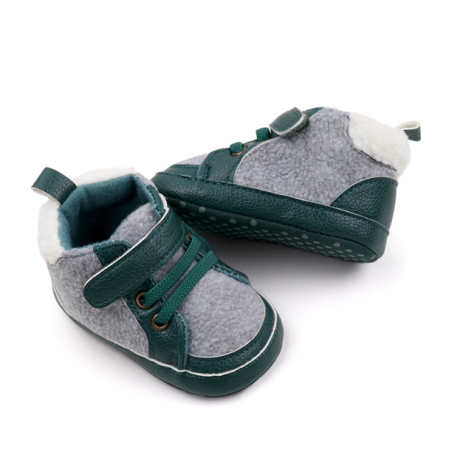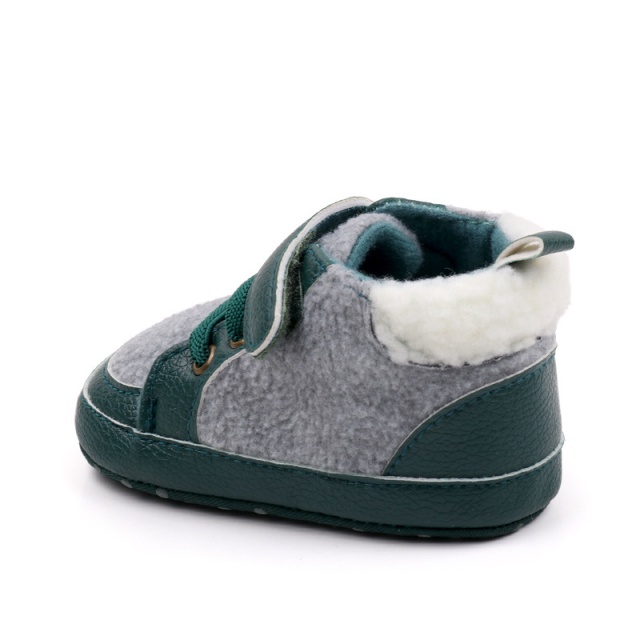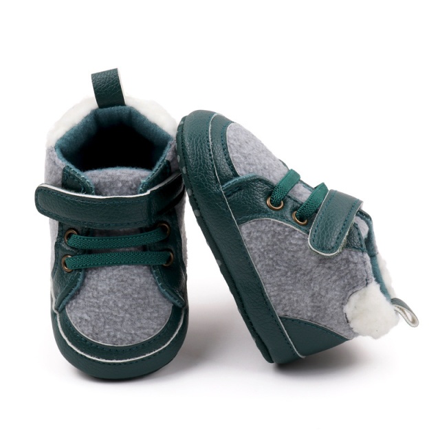 Pantofiori tip ghetuta, confortabili pentru bebelusi, cu un design modern in nuante de verde si gri, perfecti pentru sezonul rece.