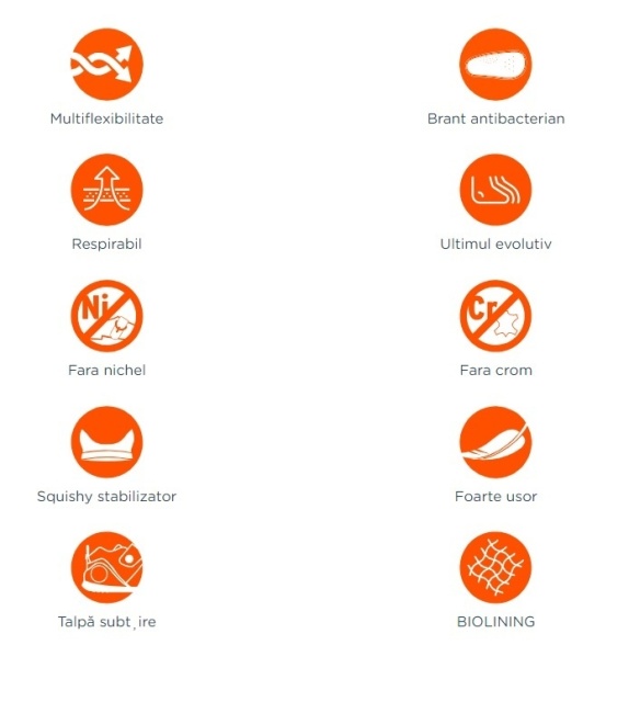 - Talpă flexibilă: flexibilă şi antiderapantă pentru a permite mișcarea naturală a piciorului.