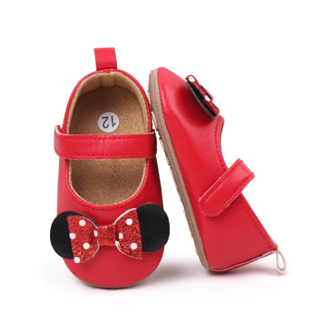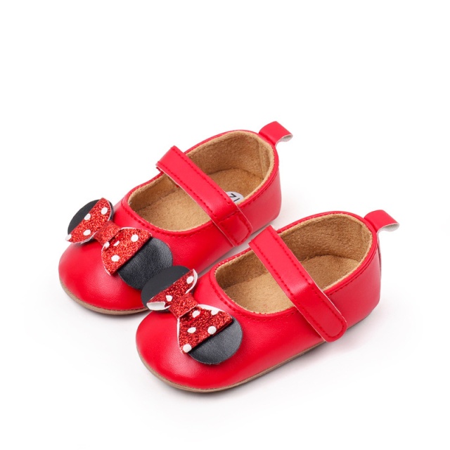 Pantofiori rosii cu fundita - mouse (marime disponibila: 3-6 luni (marimea 18
