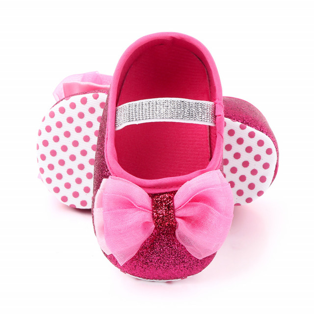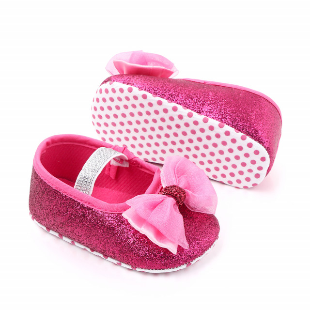 Pantofiori roz ciclamen cu sclipici si fundita (marime disponibila: 9-12 luni