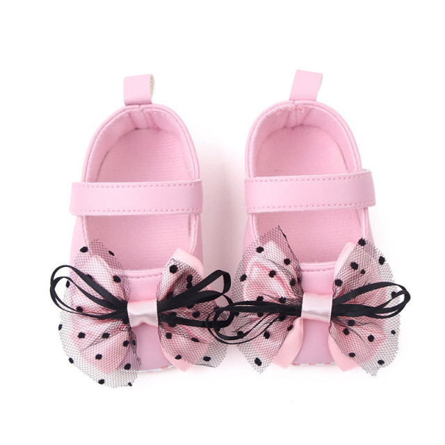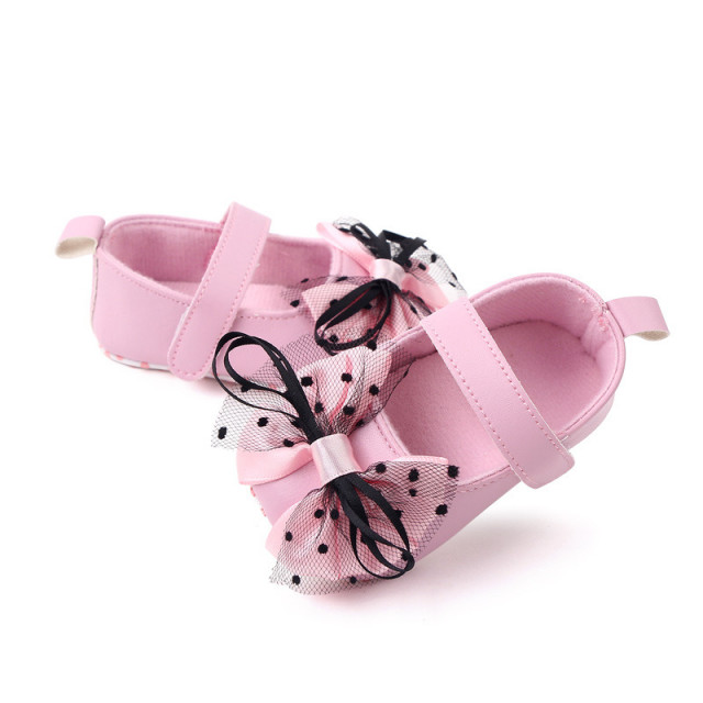 Pantofiori roz cu fundita neagra din tulle (marime disponibila: 9-12 luni