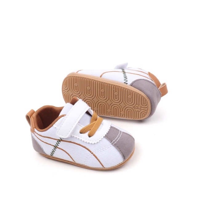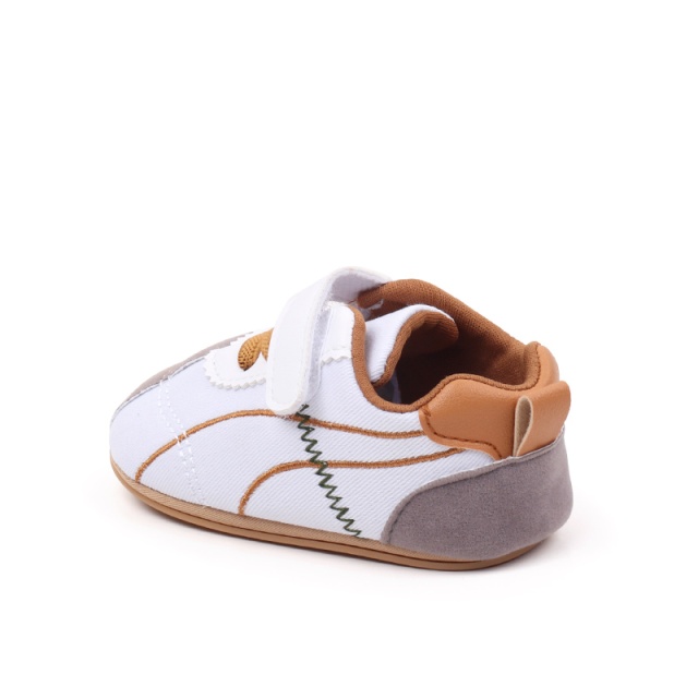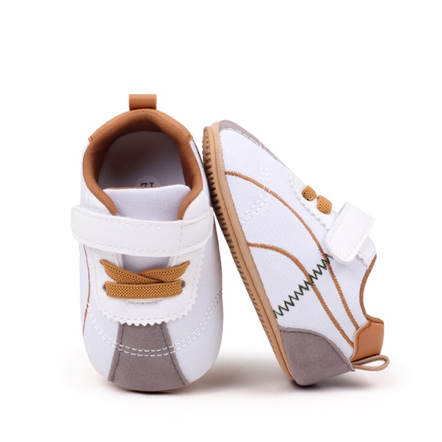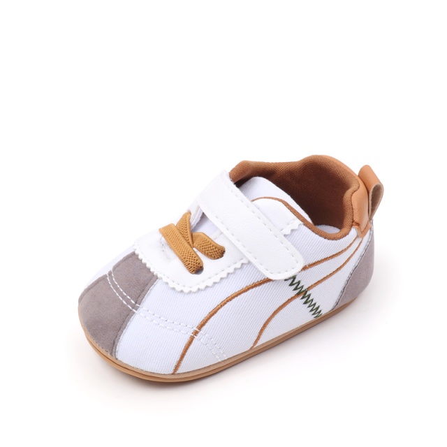 Pantofiori sport pentru bebelusi, albi cu insertii gri si maro (marime