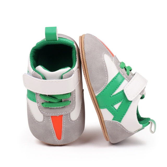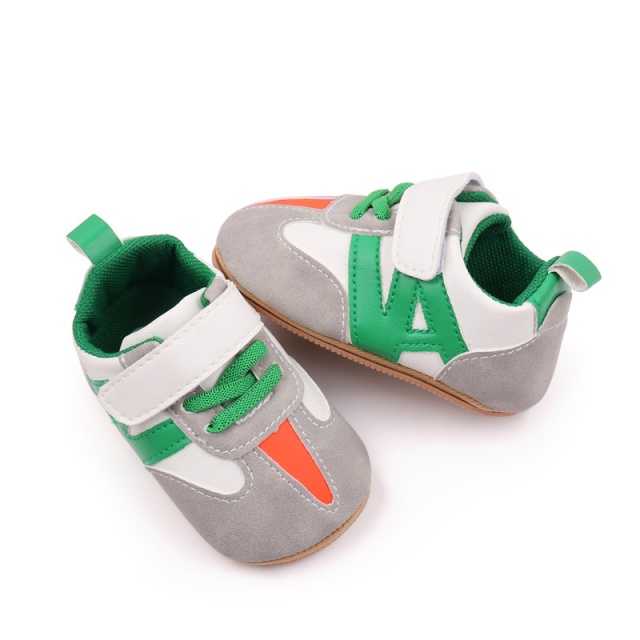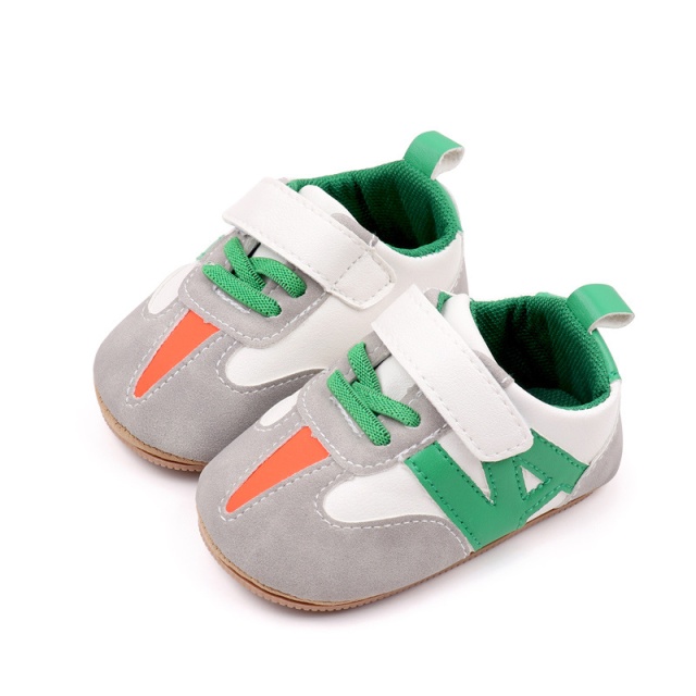 Ofera-i bebelusului tau confortul si stilul de care are nevoie cu acesti pantofi sport in culori vibrante de verde, portocaliu si gri.