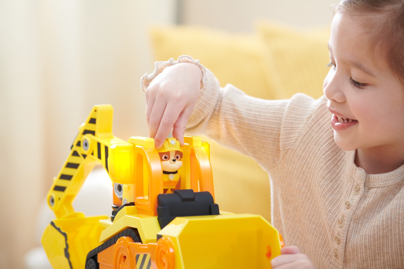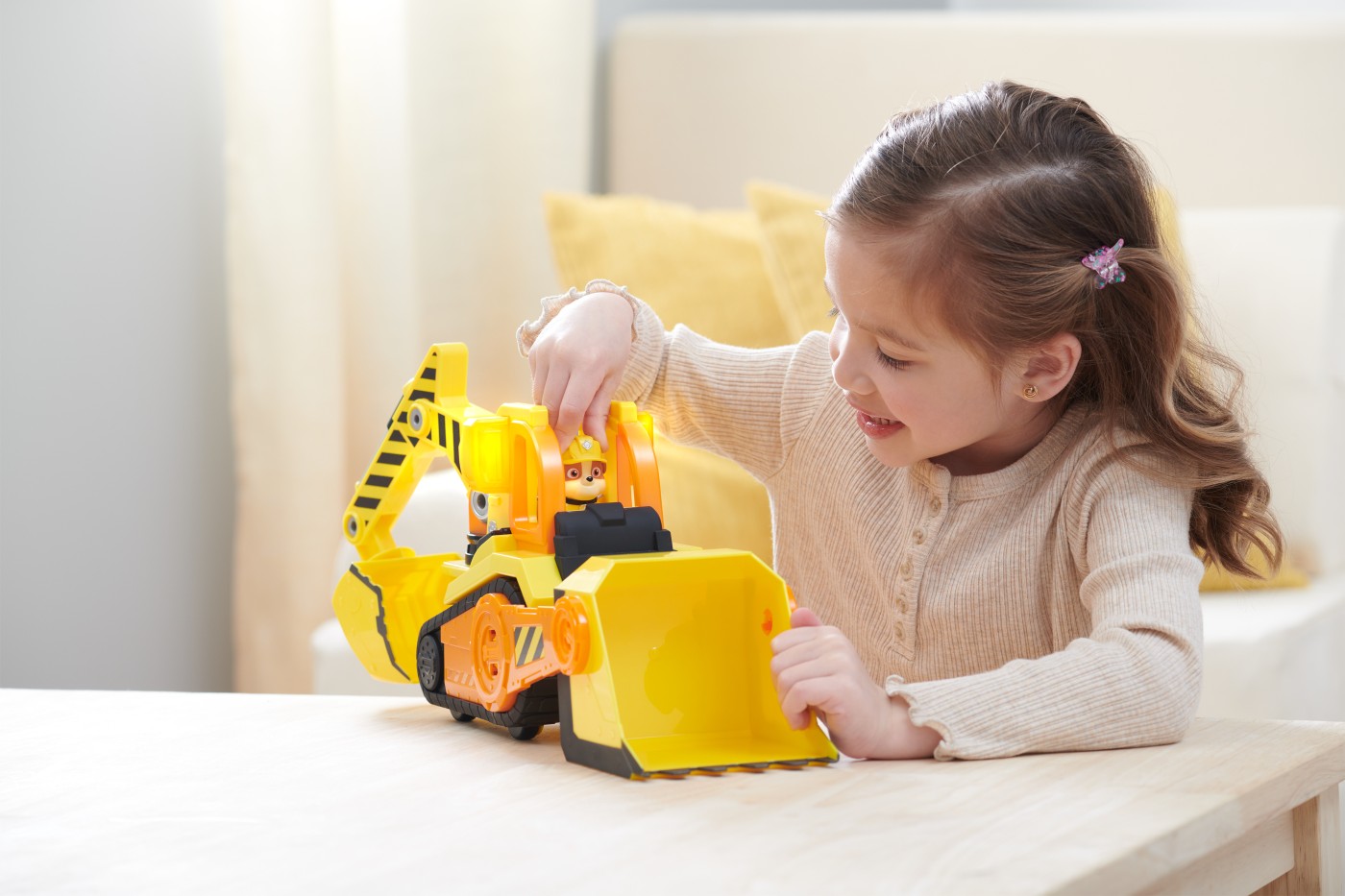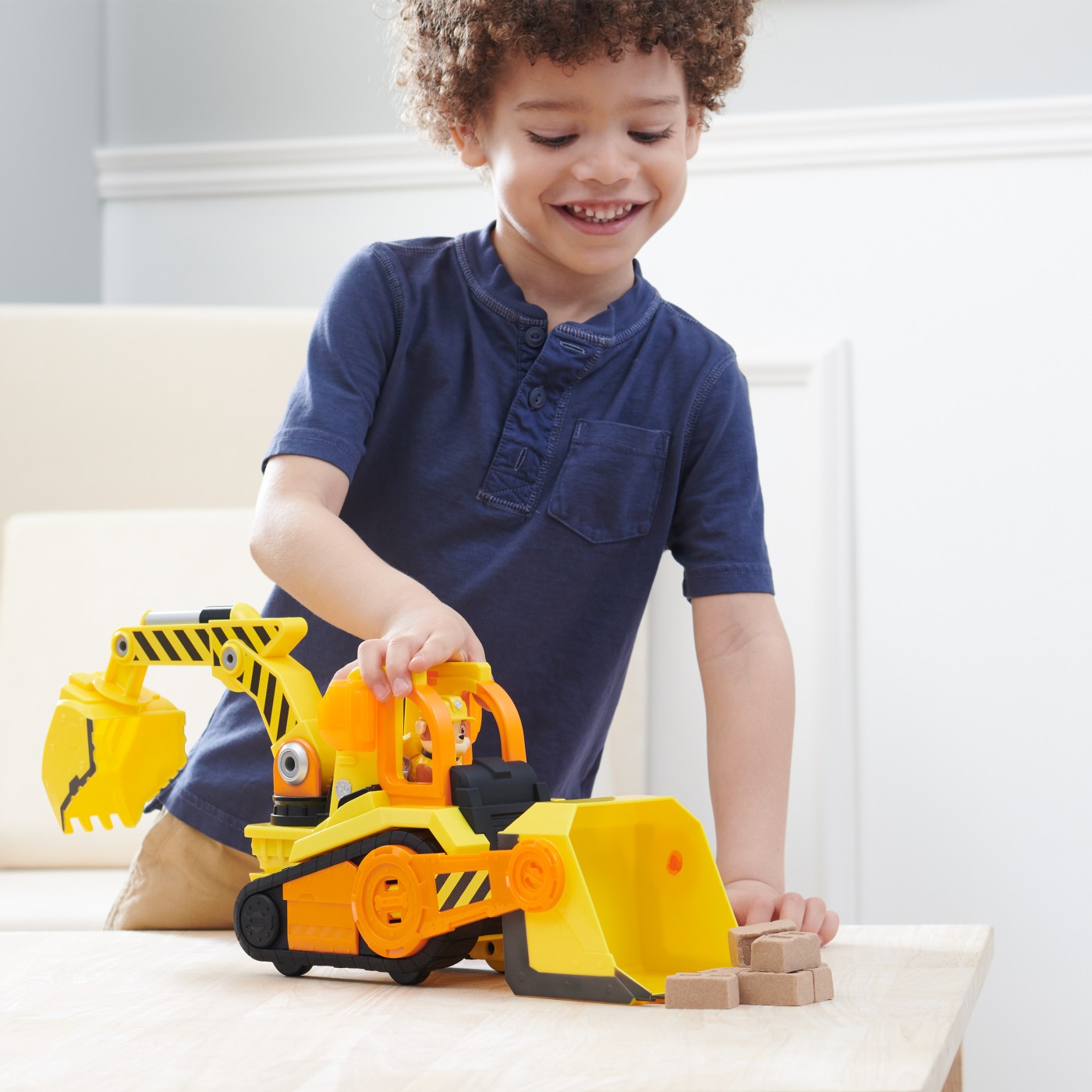 Fa echipa cu catelul tau preferat din Patrula catelusilor, Rubble, in buldozerul sau Bark Yard Deluxe. Aceasta jucarie fantastica pentru constructii are roti care functioneaza cu adevarat, doua unelte de jucarie articulate, precum si lumini si sunete captivante, care o fac sa fie de nelipsit pentru fanii seriei Rubble si echipa lui. Acest set minunat de personaje de jucarie si vehicule include o figurina Rubble care masoara peste 5 cm inaltime si este imbracata in uniforma oficiala Rubble si a echipei lui, astfel incat arata exact ca in serial. Cand este timpul pentru actiune, aseaza-l pe Rubble in scaunul soferului si impinge-l in jos pentru a activa luminile interesante si efectele sonore pe care le stii din serial. Foloseste excavatorul de jucarie articulat pentru a incepe sa sapi, apoi muta pamantul din drum folosind cupa mobila a buldozerului, exact cum face Rubble. Pentru si mai multe moduri de joaca interesante, cauta in magazine toate jucariile cu camioane de constructii Rubble si echipa lui, personajele de jucarie si seturile de joaca cu nisip kinetic de construit, impreuna cu setul de jucarii cu macara inalta Bark Yard si setul de jucarii din atelierul lui Rubble, pentru a-ti extinde si mai mult lumea constructiilor in care te joci (fiecare vandut separat). Adu la viata entuziasmul seriei Rubble si a echipei lui cu buldozerul Deluxe al lui Rubble Bark Yard.