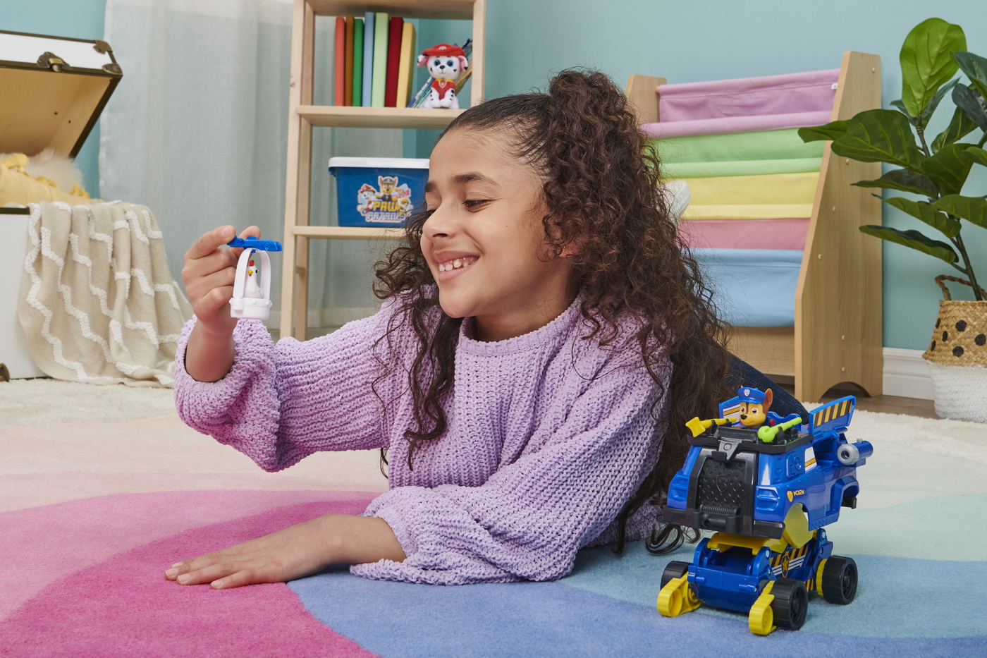 Porneste la salvare cu Chase din patrula catelusilor si vehiculul sau de salvare! Masina de politie a lui Chase are grafica si detalii autentice, o zona de depozitare pentru accesorii si o transformare interesanta de salvare. Cand vine timpul pentru o salvare palpitanta, pune-ti figurina Chase pe scaunul soferului si porneste cu viteza in misiunea ta. Odata ce ajungi, apasa pe vehicul pentru a intra in modul de salvare - vehiculul se ridica, pentru a dezvalui lansatoarele de proiectile si drona de salvare, oferindu-i in acelasi timp lui Chase vederea perfecta pentru o salvare palpitanta! Lanseaza proiectilele de minge de tenis si plasa de salvare pentru a indeparta obstacolele. Pentru misiuni de salvare in locuri greu accesibile, deschide compartimentul de depozitare din spatele vehiculului si trimite drona de salvare a lui Chase si cosul de recuperare pentru a duce iepurasul sa zboare in siguranta! (figurina inclusa) Dupa ce adorabilul animal prieten a fost salvat, agata cosul in partea din fata a vehiculului pentru a-i oferi un loc sigur in care sa calatoreasca pe drumul de intoarcere spre casa. Da viata salvarilor tale pline de actiune, in timp ce iti folosesti imaginatia pentru a-ti indeplini misiunile. Pentru si mai multe aventuri de salvare, cauta vehiculul lui Marshall porneste si salveaza (vandut separat). Jucariile cu vehicule Rise and Rescue pentru baieti si fete de 3 ani sunt cadourile perfecte pentru copii. Formeaza o echipa cu catelusul tau favorit din patrula catelusilor si Chase, si salveaza ziua cu vehiculul sau de ridicare si salvare!