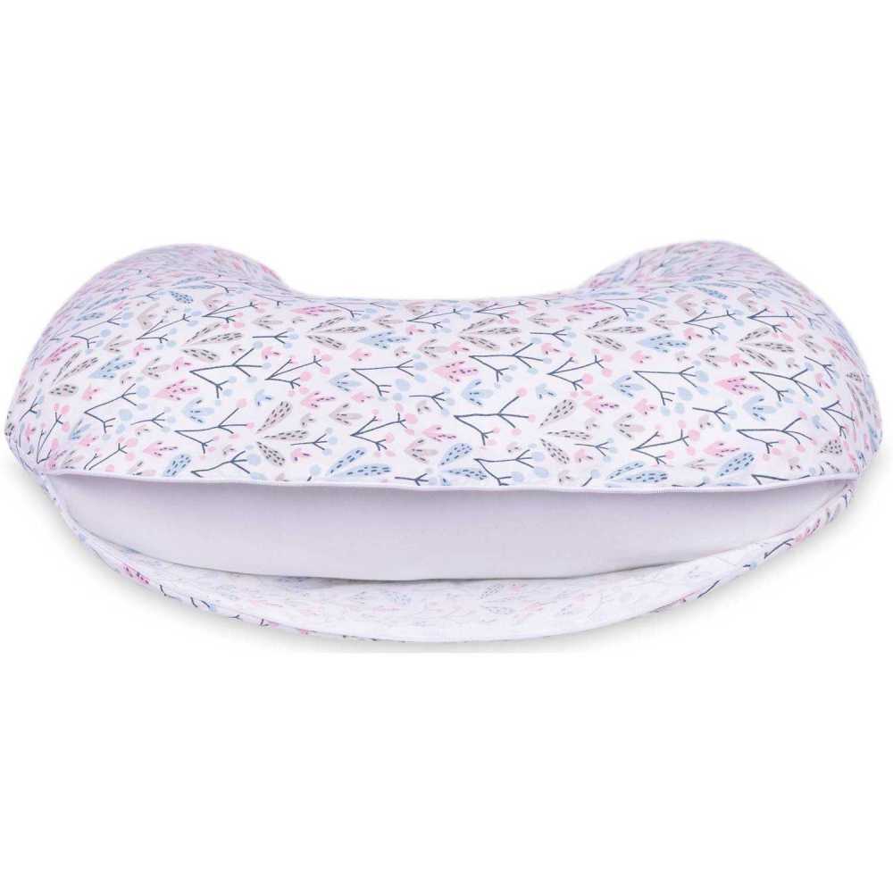Umplutura cu puf poliester siliconizat moale permite pernei sa se adapteze formei corpului copilului, datorita careia ofera o pozitie confortabila atat mamei cat si bebelusului.