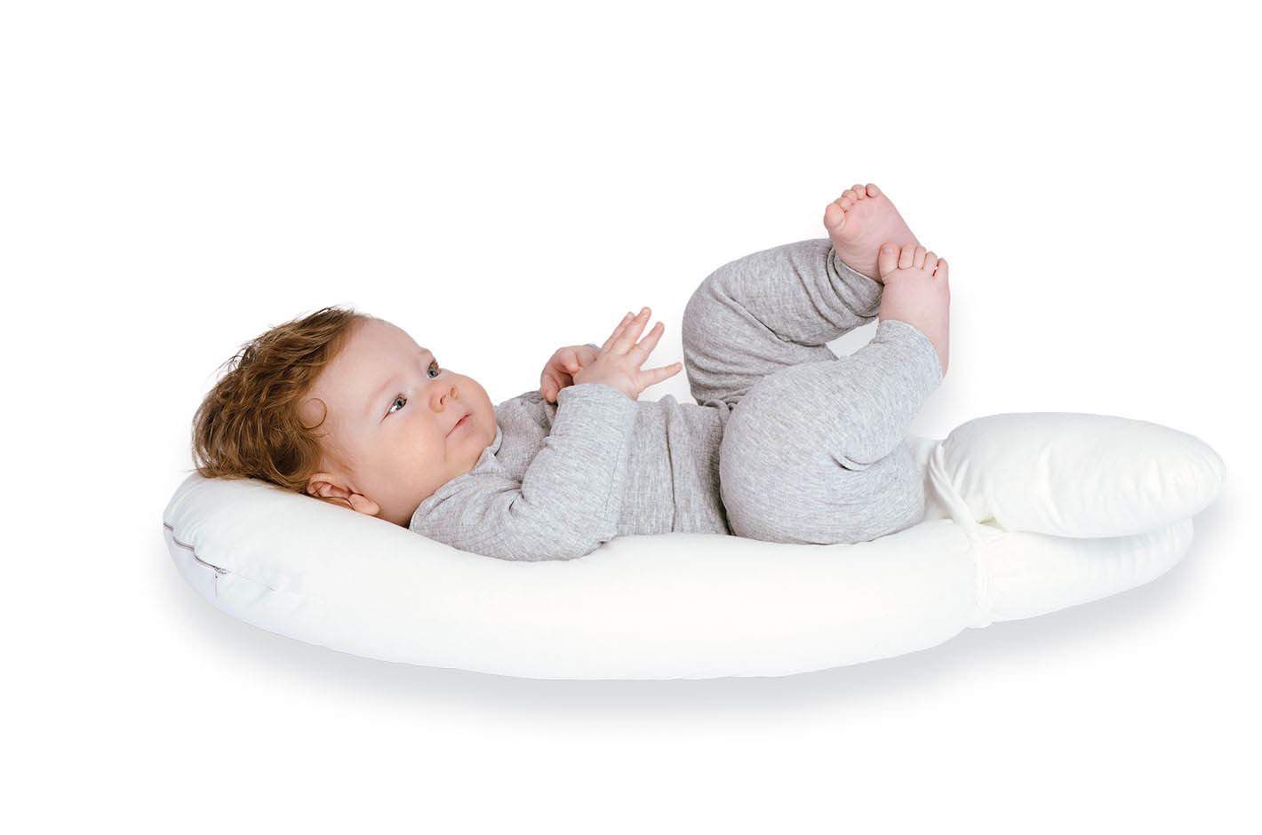 - Dimensiunile pernei se ajusteaza cu o banda textila inclusa, in functie de marimea bebelusului