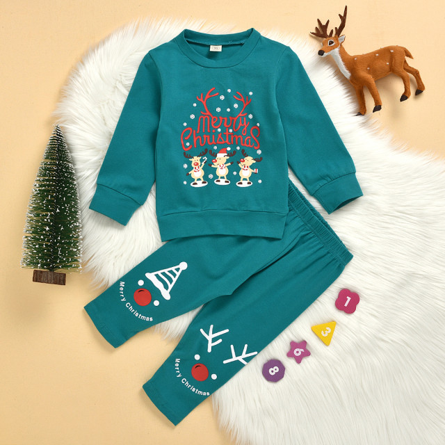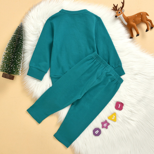 Pijama turqoise pentru copii - merry christmas (marime disponibila: 9-12 luni