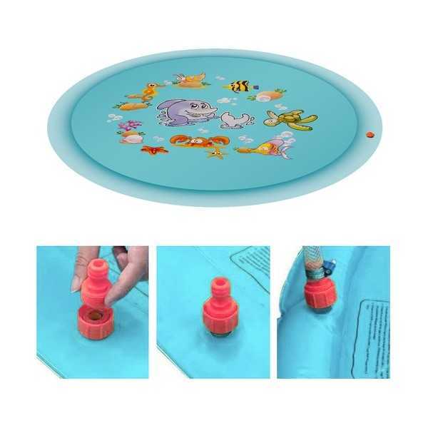 Gaurile din margine creeaza o fantana indreptata spre centrul covorasului, copilul care sta pe covoras se va distra mult si se va racori intr-o zi fierbinte. In plus, apa se aduna pe covoras creand o piscina mica.