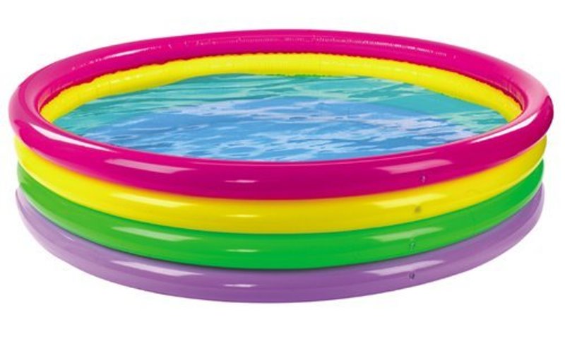 Piscina de gradina gonflabila este formata din 4 inele gonflabile in diferite culori. Peretii grosi si moi sunt facuti din vinil rezistent (cu grosimea de 0,19 cm). Produsul este destinat copiilor peste 3 ani.