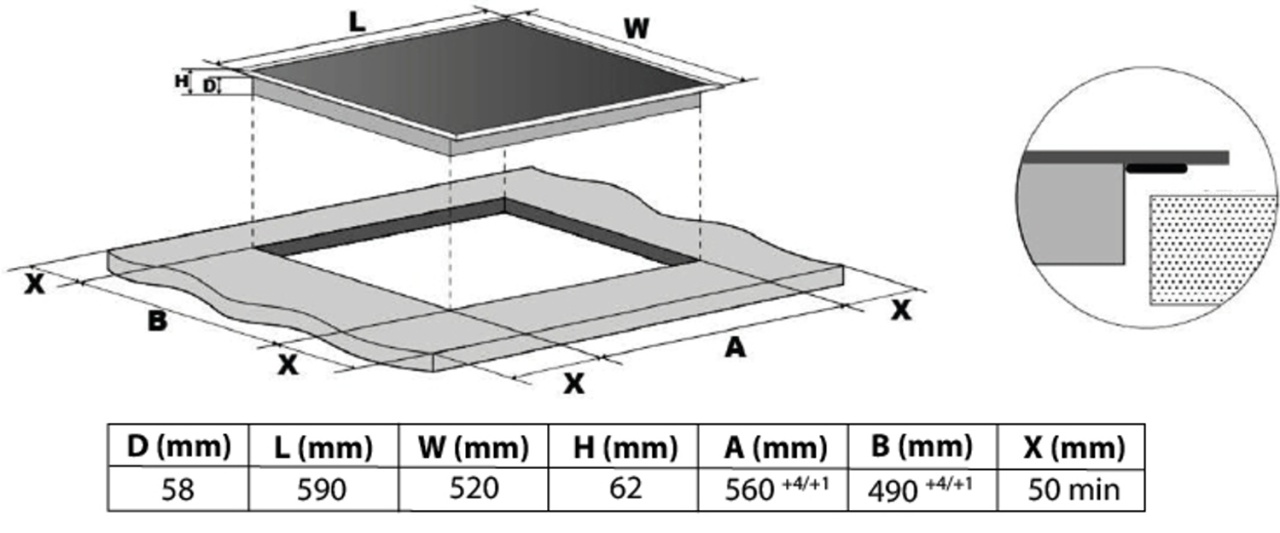Plita cu inductie eta 579090000, 4 zone de gatit, booster, 7.2 kw, 59 x 52 cm,