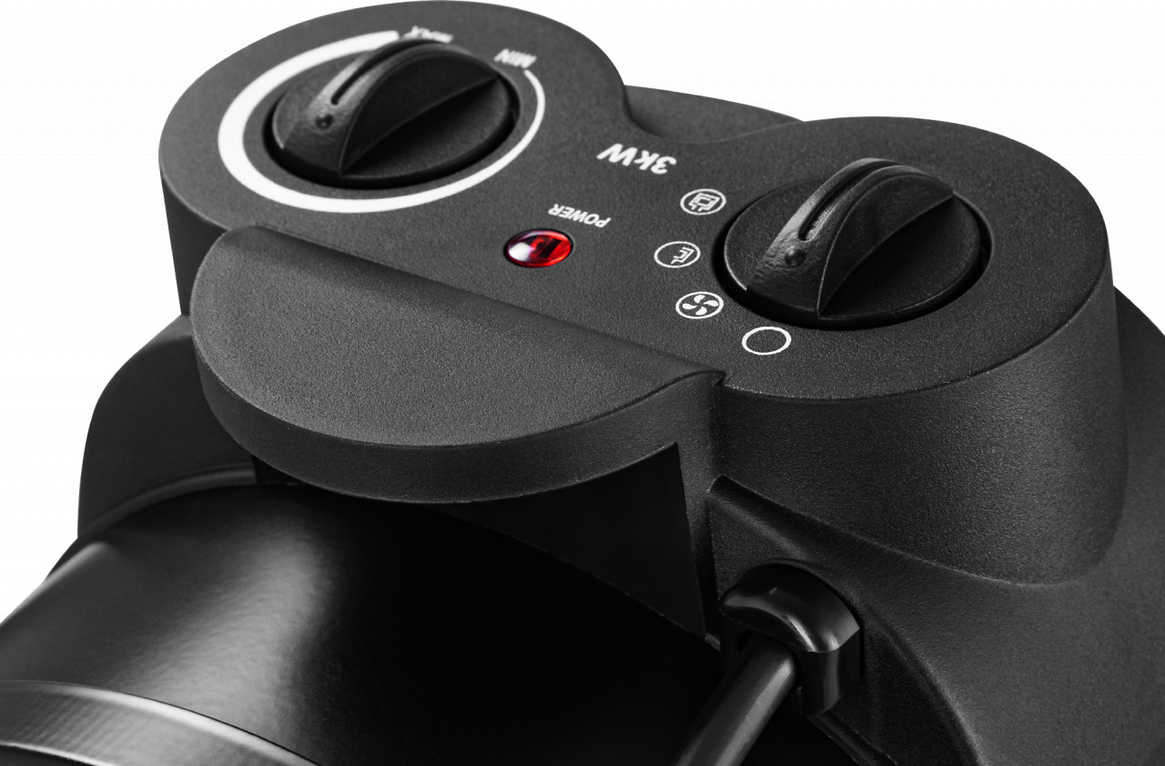 Produs RESIGILAT (POATE PREZENTA MICI URME DE ZGARIETURI SI/SAU CUTIA DETERIORATA DIN TRANSPORT) Putere nominala 3000 W 2 niveluri de putere: 1500 W / 3000 W Element de incalzire ceramic PTC pentru incalzire eficienta Termostat reglabil Ventilator incorporat 3 moduri de operare: incalzire la jumatate din putere, incalzire la putere maxima, ventilare fara aer cald Indicator luminos de functionare Finisaj cu suprafata non-toxica Dispozitivul poate fi utilizat atat in modul de incalzire, cat si in cel de ventilare fara incalzire, asadar nu trebuie sa va faceti griji cu privire la sezonalitate. Daca trebuie doar sa ventilati aerul din camera dar nu doriti sa va incalziti, atunci veti folosi modul de suflare fara incalzire. Aparatul devine imediat un ventilator placut. Nu trebuie sa cumparati doua dispozitive de ventilatie unul pentru iarna si unul pentru vara. ECG HH 3010 este util in orice anotimp. Aeroterma ECG HH 3010 este echipata cu termostatul reglabil care are rolul de a porni si opri aeroterma in functie de temperatura din camera si cea dorita. Astfel, aeroterma adapteaza permanent puterea la care functioneaza, pentru a mentine o temperatura ambientala constanta. Atunci cand este mai frig aeroterma va functiona la o putere mai mare, iar atunci se ajunge la temperatura dorita aeroterma va functiona cu o putere mult mai mica. Cu ECG HH 3010 aveti posibilitatea de a regla temperatura dorita in mod liniar infinit si nu doar in anumite trepte. In timpul incalzirii nu sunt eliberate substante nocive in aer datorita tratamentului de suprafata netoxic . Cerinte de instalare Aeroterma este un produs de uz casnic utilizata pentru incalzirea locuintelor prin ventilarea unei mase de aer cald. Aparatul se aseaza pe o suprafata plana care ofera suficient spatiu liber pentru o aerisire adecvata. Trebuie sa existe o distanta de cel putin 1 m intre dispozitiv si obiectele din jur. Incalzitorul nu trebuie actionat fara bazele montate. Protectie impotriva supraincalzirii Siguranta termica interna protejeaza aparatul de supraincalzire si il opreste automat. In acest caz, indicatorul de functionare se stinge si dispozitivul este gata de utilizare din nou dupa ce se raceste (in aproximativ 15 minute}. Semnalizare luminoasa a sistemului atunci cand acesta este in functiune si oprirea automata in caz de supraincalzire, sunt esentiale cand aeroterma functioneaza o perioada lunga de timp la puteri mari. Sistemul automat de protectie va opri aparatul daca va detecta o crestere anormala de temperatura. - Maner pentru transport usor - Lungimea cablului de alimentare 120 cm - Nivel de zgomot (DB) 50 - Tensiune nominala: 220–240 V~ 50 Hz