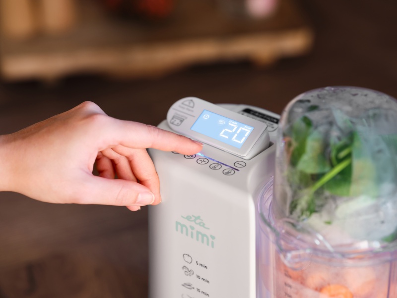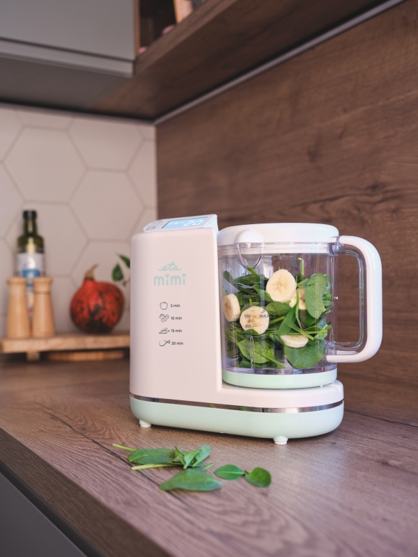 Produs RESIGILAT (POATE PREZENTA MICI URME DE ZGARIETURI SI/SAU CUTIA DETERIORATA DIN TRANSPORT) Preparare sanatoasa, usoara si rapida a alimentelor pentru bebelusi Dispozitiv multifunctional 6 in 1 : preparare la abur, amestecare, incalzire, dezghetare, sterilizare, mentinere la cald (1-8 ore la 40°C) Recipiente si accesorii fabricate din tritan sigur pentru sanatate, care nu contine BPA Functie de detartrare (memento automat) 2 trepte de viteza la amestecare Panou tactil cu afisaj LCD rabatabil Cronometru cu optiunea de a seta functionarea de la 1 la 30 de minute si de mentinere la cald de la 1 la 8 ore Protectie impotriva supraincalzirii si in caz de lipsa a apei (oprire automata) Functie de oprire automata (dupa 10 minute) Volumul rezervorului de apa 280 ml Motor DC de inalta calitate pentru durata lunga de viata si functionare silentioasa Recipient de preparare de inalta calitate (0,9 l) si accesorii din tritan Elementele separate se pot spala in masina de spalat vase Sistem automat de detartrare care faciliteaza curatarea Putere de incalzire 700 W Motor de 120 W Lungimea cablului de alimentare 0,9 m Accesorii incluse: Recipiente pentru prepararea la abur si pentru sterilizare (2 buc) Aparatoare impotriva stropilor Filtru Pahar de 0,3 l Racleta pentru amestecare Penseta din plastic Proiectat pentru gatirea sanatoasa si rapida a alimentelor pentru copii Fiecare mama stie ca pregatirea alimentelor proaspete si sanatoase pentru copil poate fi o provocare. Cu acest aparat multifunctional ETA Mimi 6 in 1 primesti un ajutor nepretuit, economisesti timp si energie si poti astfel petrece mai multe momente cu copilul tau. In plus, vei avea mai putine griji cu privire la prepararea mancarii. O solutie completa Acest minunat aparat multifunctional ETA Mimi face tot ce ai nevoie: prepara la aburi , amesteca , incalzeste , dezgheta , sterilizeaza si mentine alimentele calde pana la 8 ore. Gatirea sanatoasa la aburi si amestecarea blanda vor crea un amestec ideal pentru primele alimente ale copilului, in timp ce functia de sterilizare va ofera un proces de preparare igienic. Panou tactil si comenzi simple pentru o utilizare convenabila Controlul este simplu si intuitiv datorita panoului tactil clar cu afisaj LCD rabatabil. Puteti seta cronometrul de la 1 la 30 de minute de functionare sau puteti utiliza functia de mentinere la cald prin care mentineti alimentele la 40 °C timp de pana la 8 ore . Beneficiati astfel de mancarea calda sau gata preparata exact atunci cand aveti nevoie. Siguranta si fiabilitate ETA Mimi este echipat cu o dubla siguranta: oprire automata dupa 10 minute si protectie impotriva supraincalzirii in caz de lipsa a apei. Recipientele din tritan de inalta calitate precum si accesoriile sale sunt sigure pentru alimentele copiilor si foarte usor de curatat in masina de spalat vase. In plus, acest aparat multifunctional nu ocupa mult spatiu. Cu dimensiunile sale compacte de (29 x 27,5 x 15 cm) il puteti tine cu usurinta pe blatul din bucatarie fara sa va incurce in vreun fel. Mai mult timp cu copilul, mai putin timp in bucatarie Mancarurile sanatoase vor fi gata in cel mai scurt timp ceea ce iti elibereaza mainile pentru cel mai important lucru – timpul cu bebelusul tau. Aparatul de gatit cu aburi 6 in 1 ETA MIMI 4306 90000 va fi un ajutor indispensabil pentru alimentatia sanatoasa a copilului tau si pentru bunastarea familiei tale!
