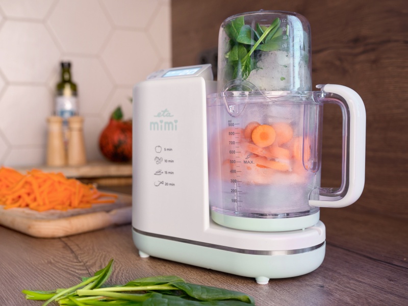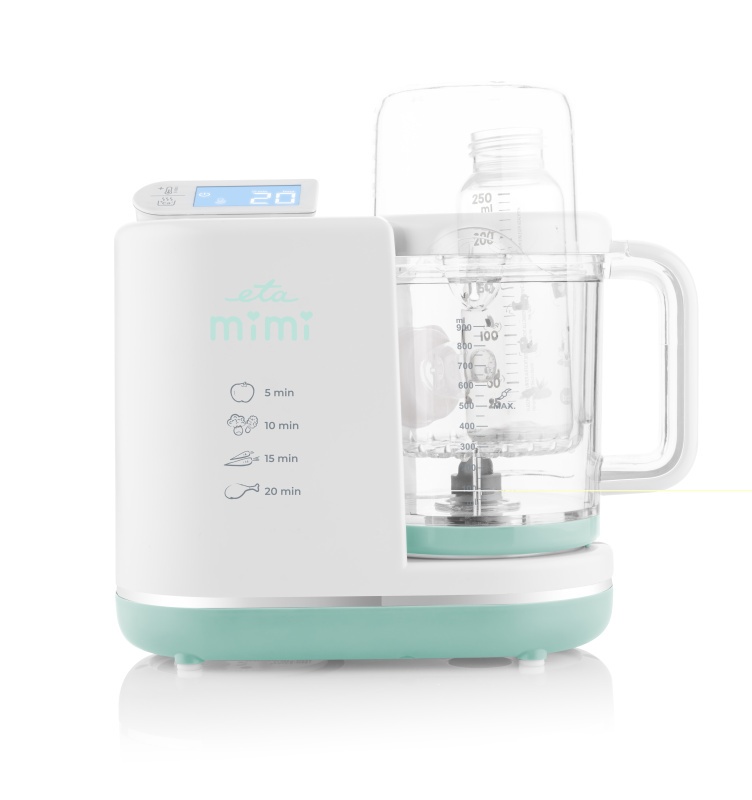 Produs RESIGILAT (POATE PREZENTA MICI URME DE ZGARIETURI SI/SAU CUTIA DETERIORATA DIN TRANSPORT) Preparare sanatoasa, usoara si rapida a alimentelor pentru bebelusi Dispozitiv multifunctional 6 in 1 : preparare la abur, amestecare, incalzire, dezghetare, sterilizare, mentinere la cald (1-8 ore la 40°C) Recipiente si accesorii fabricate din tritan sigur pentru sanatate, care nu contine BPA Functie de detartrare (memento automat) 2 trepte de viteza la amestecare Panou tactil cu afisaj LCD rabatabil Cronometru cu optiunea de a seta functionarea de la 1 la 30 de minute si de mentinere la cald de la 1 la 8 ore Protectie impotriva supraincalzirii si in caz de lipsa a apei (oprire automata) Functie de oprire automata (dupa 10 minute) Volumul rezervorului de apa 280 ml Motor DC de inalta calitate pentru durata lunga de viata si functionare silentioasa Recipient de preparare de inalta calitate (0,9 l) si accesorii din tritan Elementele separate se pot spala in masina de spalat vase Sistem automat de detartrare care faciliteaza curatarea Putere de incalzire 700 W Motor de 120 W Lungimea cablului de alimentare 0,9 m Accesorii incluse: Recipiente pentru prepararea la abur si pentru sterilizare (2 buc) Aparatoare impotriva stropilor Filtru Pahar de 0,3 l Racleta pentru amestecare Penseta din plastic Proiectat pentru gatirea sanatoasa si rapida a alimentelor pentru copii Fiecare mama stie ca pregatirea alimentelor proaspete si sanatoase pentru copil poate fi o provocare. Cu acest aparat multifunctional ETA Mimi 6 in 1 primesti un ajutor nepretuit, economisesti timp si energie si poti astfel petrece mai multe momente cu copilul tau. In plus, vei avea mai putine griji cu privire la prepararea mancarii. O solutie completa Acest minunat aparat multifunctional ETA Mimi face tot ce ai nevoie: prepara la aburi , amesteca , incalzeste , dezgheta , sterilizeaza si mentine alimentele calde pana la 8 ore. Gatirea sanatoasa la aburi si amestecarea blanda vor crea un amestec ideal pentru primele alimente ale copilului, in timp ce functia de sterilizare va ofera un proces de preparare igienic. Panou tactil si comenzi simple pentru o utilizare convenabila Controlul este simplu si intuitiv datorita panoului tactil clar cu afisaj LCD rabatabil. Puteti seta cronometrul de la 1 la 30 de minute de functionare sau puteti utiliza functia de mentinere la cald prin care mentineti alimentele la 40 °C timp de pana la 8 ore . Beneficiati astfel de mancarea calda sau gata preparata exact atunci cand aveti nevoie. Siguranta si fiabilitate ETA Mimi este echipat cu o dubla siguranta: oprire automata dupa 10 minute si protectie impotriva supraincalzirii in caz de lipsa a apei. Recipientele din tritan de inalta calitate precum si accesoriile sale sunt sigure pentru alimentele copiilor si foarte usor de curatat in masina de spalat vase. In plus, acest aparat multifunctional nu ocupa mult spatiu. Cu dimensiunile sale compacte de (29 x 27,5 x 15 cm) il puteti tine cu usurinta pe blatul din bucatarie fara sa va incurce in vreun fel. Mai mult timp cu copilul, mai putin timp in bucatarie Mancarurile sanatoase vor fi gata in cel mai scurt timp ceea ce iti elibereaza mainile pentru cel mai important lucru – timpul cu bebelusul tau. Aparatul de gatit cu aburi 6 in 1 ETA MIMI 4306 90000 va fi un ajutor indispensabil pentru alimentatia sanatoasa a copilului tau si pentru bunastarea familiei tale!Descriere produs