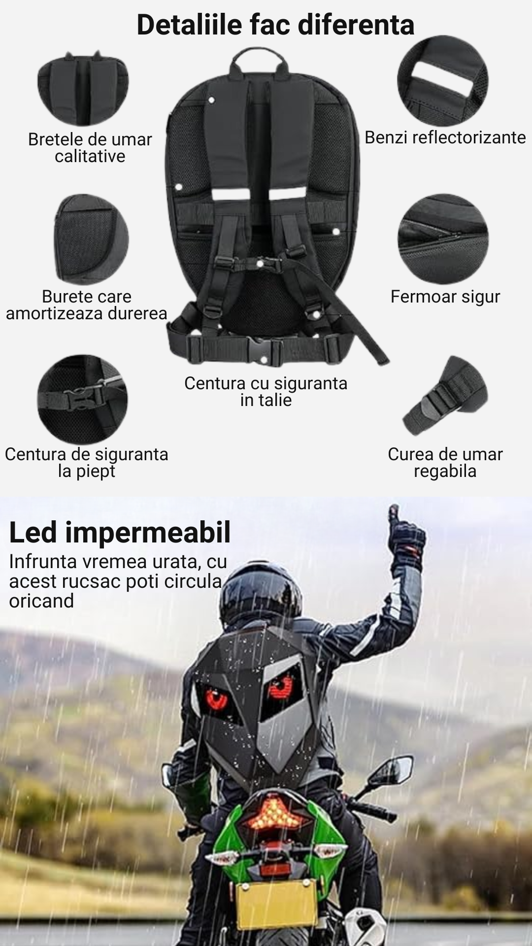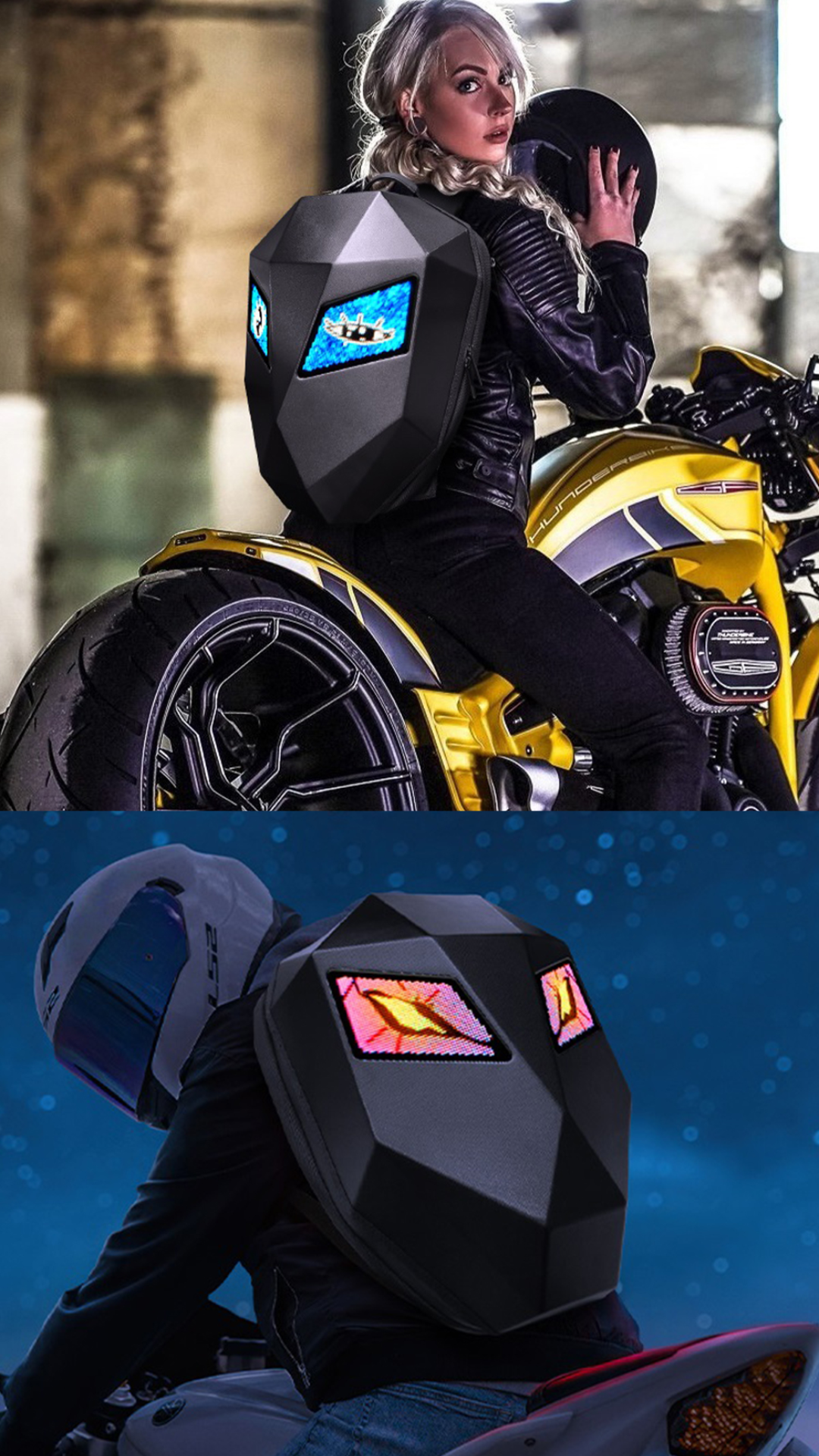 Rucsac modern pentru motociclisti, Crelander, ecran led personalizat, rezistent la apa, multiple moduri de afisare, bretele de umar confortabile din burete, centuri de siguranta pentru piept si talie, benzi reflectorizante, sertar spatios 2 in 1