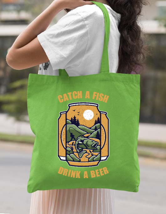 Sacosa din panza catch a fish verde mar