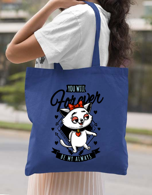 Sacosa din panza Forever my always Albastru regal• Sacoșă mică din pânză, 100 % bumbac.
