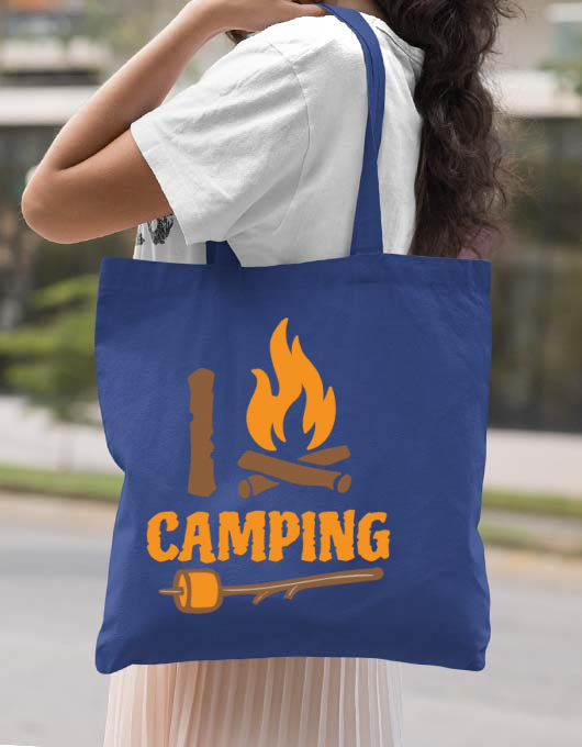 Sacosa din panza I love Camping Albastru regal
