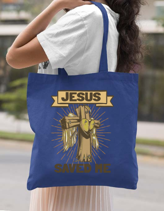 Sacosa din panza Jesus Saved Me Albastru regal• Sacoșă mică din pânză, 100 % bumbac.