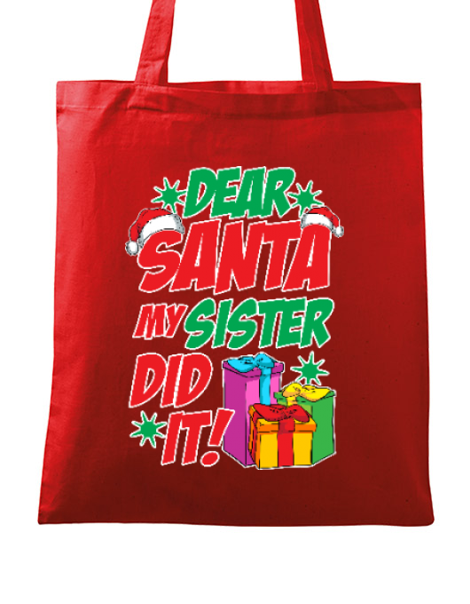 Sacosa din panza My sister did it Rosu• Sacoșă mică din pânză, 100 % bumbac.
