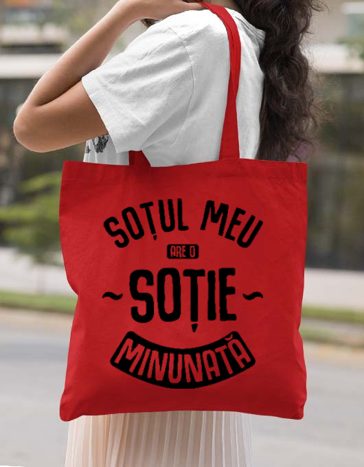 Sacosa din panza o sotie minunata rosu