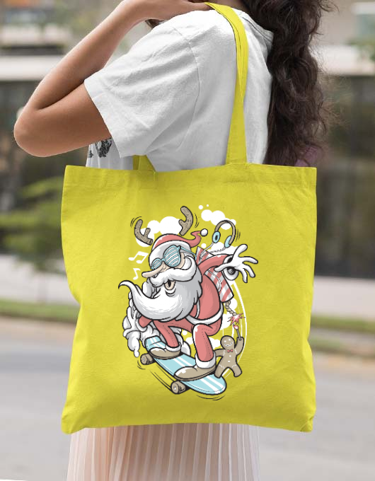Sacosa din panza Skater Santa Galben• Sacoșă mică din pânză, 100 % bumbac.