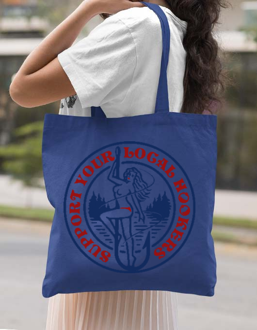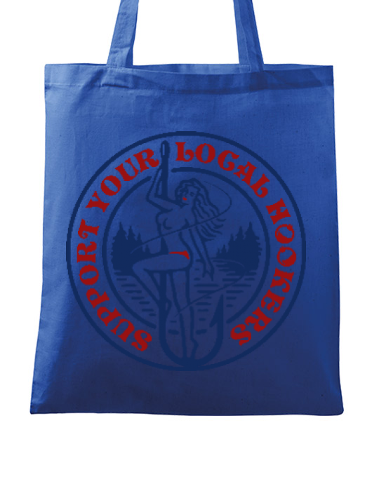 Sacosa din panza SUPPORT YOUR LOCAL HOOKERS Albastru regal
