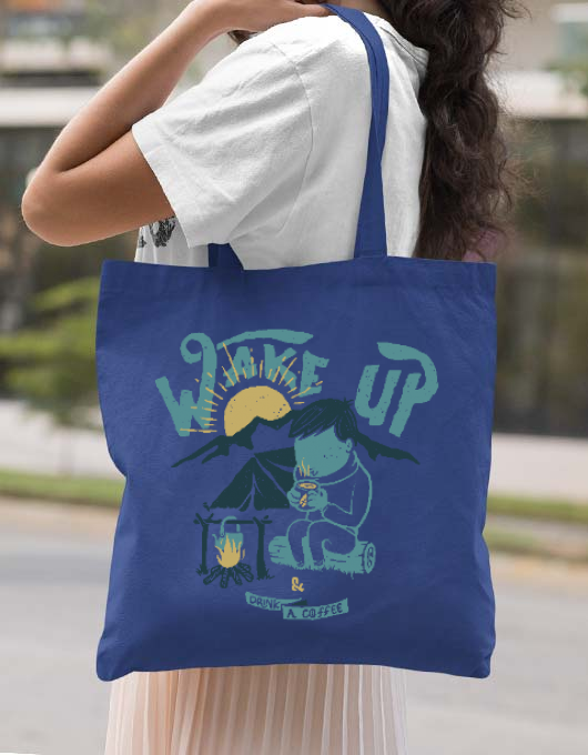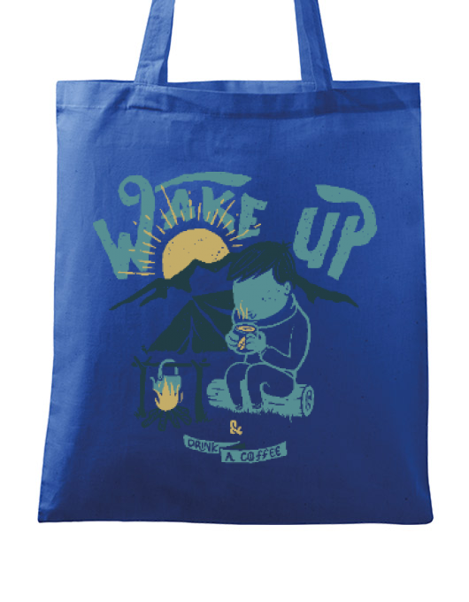Sacosa din panza Wake up and drink a coffee Albastru regal• Sacoșă mică din pânză, 100 % bumbac.