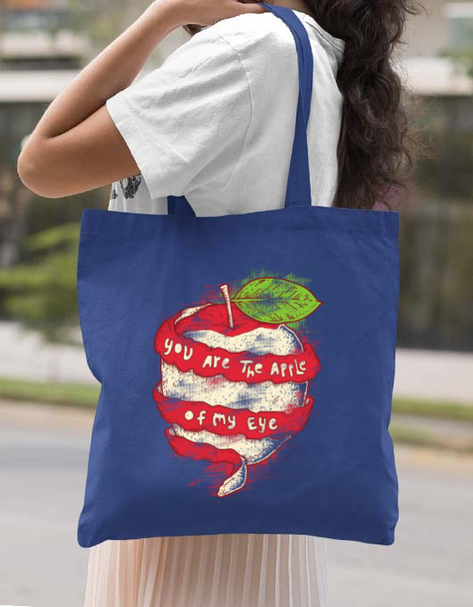Sacosa din panza You are the apple of my eye Albastru regal• Sacoșă mică din pânză, 100 % bumbac.